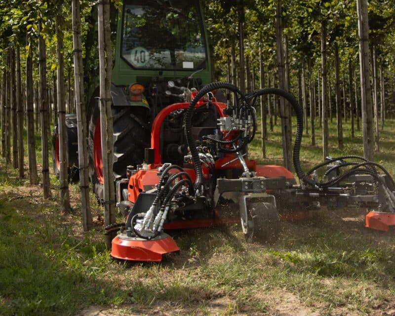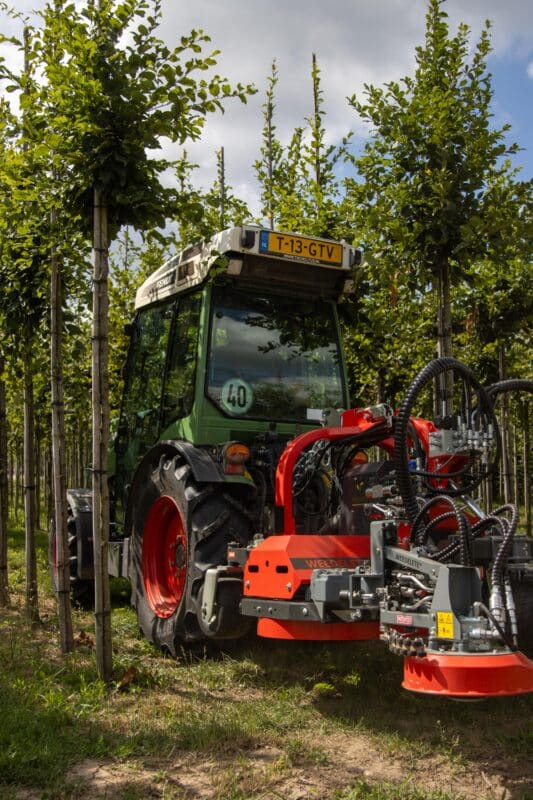 Diese Mäh-Hackmaschine mäht den Grasstreifen im selben Arbeitsgang wie das Hacken der Schwarzstreifen in der Baumschule. Die WEEDELETE® LM ist mit fester oder variabler Arbeitsbreite erhältlich, wobei die variable Ausführung optional über die automatische WEEDELETE® Side-Shift-Steuerung betrieben werden kann.